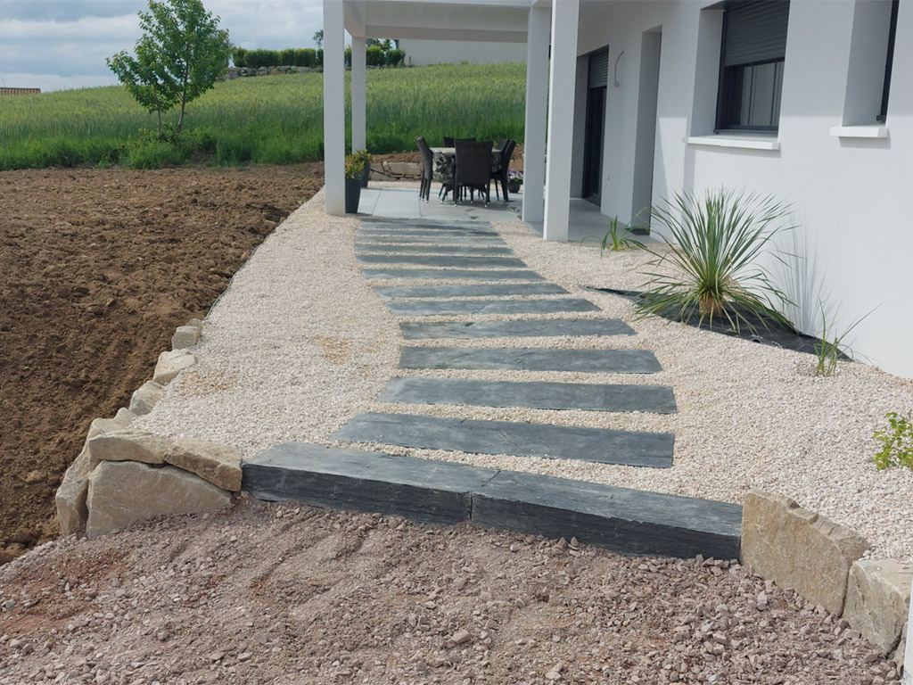De l'originalité avec classe, le mélange schiste et gazon.